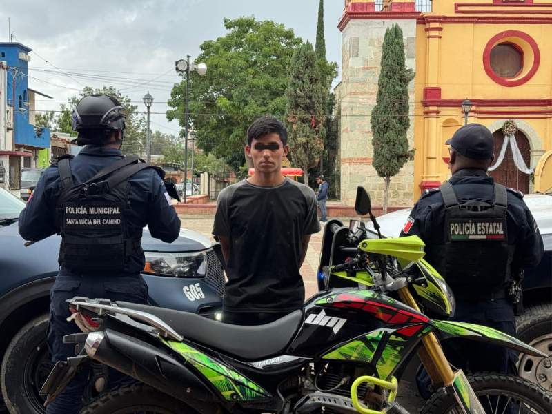 Santa Lucía del Camino, Oaxaca; 13 de octubre de 2025.– Por la mañana, una llamada al Centro de Control y Comando (C2 Santa Lucía) reportaba el robo de una motocicleta en la col. Ampliación Santa Lucía y pasado el mediodía; en un operativo conjunto entre la Policía Municipal y la Policía Estatal, fue detenido Jairo Josué C.V., de 19 años, como probable responsable del delito de posesión de una motocicleta con reporte de robo. Así lo informó el presidente municipal Juan Carlos García Márquez.