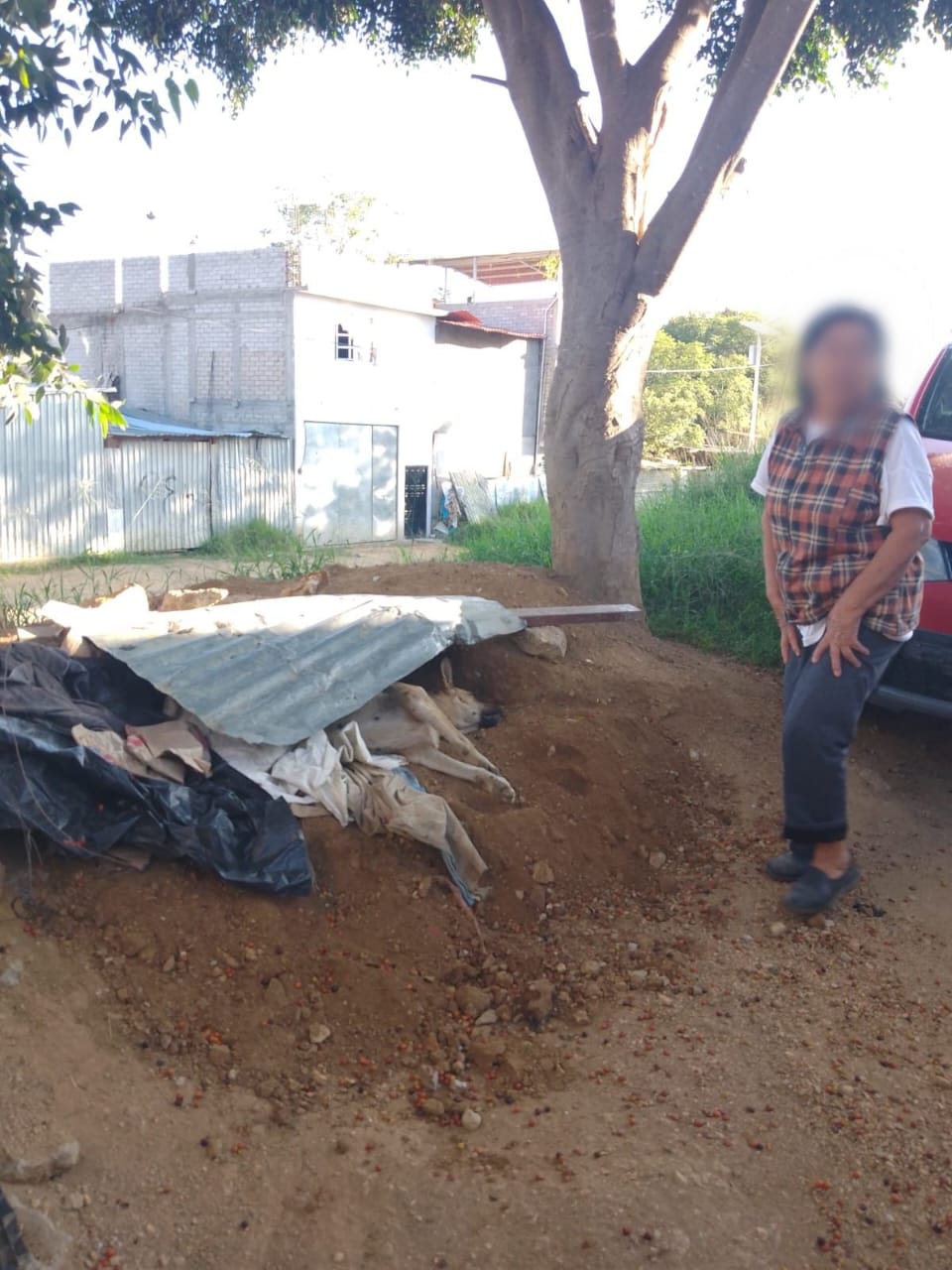 Al arribar, el personal de la Fiscalía de Oaxaca observó que se trataba de una perrita que estaba en malas condiciones de salud, en un espacio inadecuado, cubierta con trapos y láminas, por ello, fue trasladada a un refugio de animales perteneciente a una asociación civil, para su atención y resguardo.
